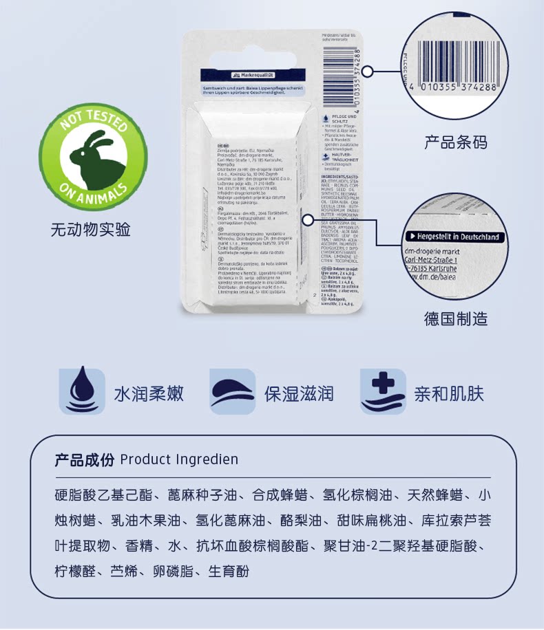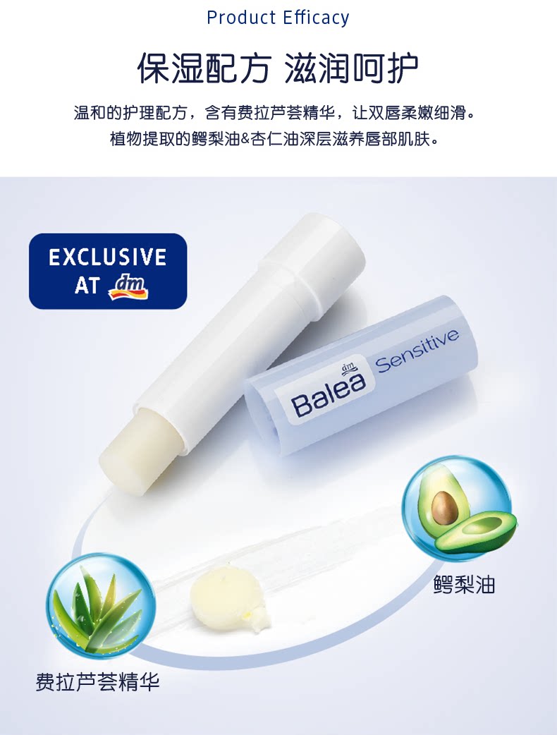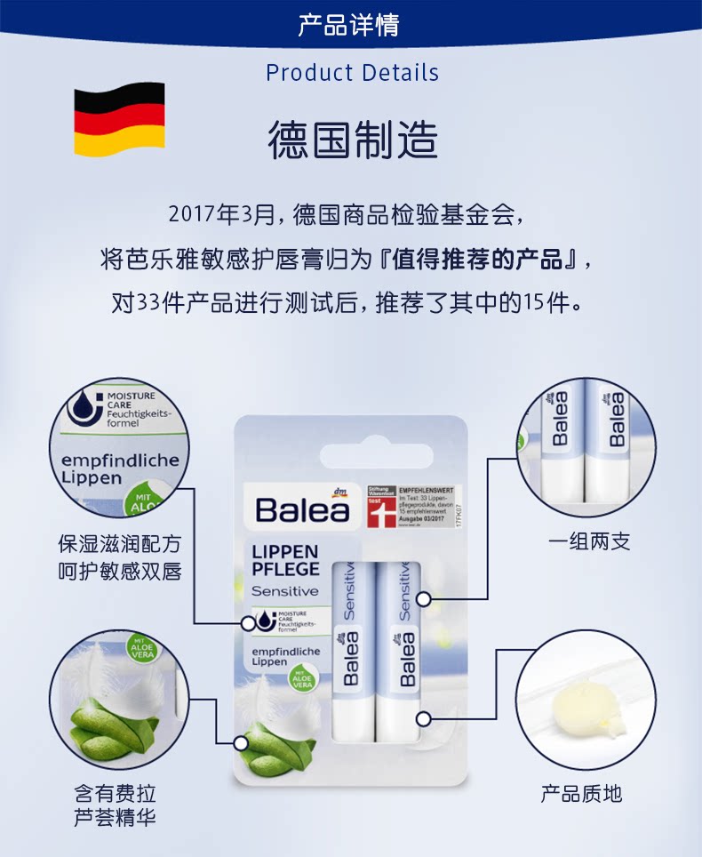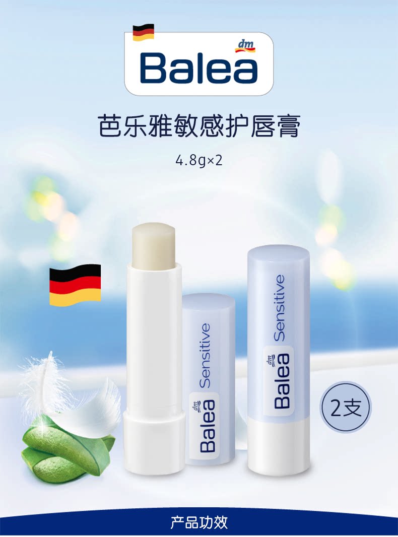 德国原装进口Balea芭乐雅(两支装)无色修复唇纹补水保湿滋润去死皮敏感护唇膏*2 滋润敏感唇部