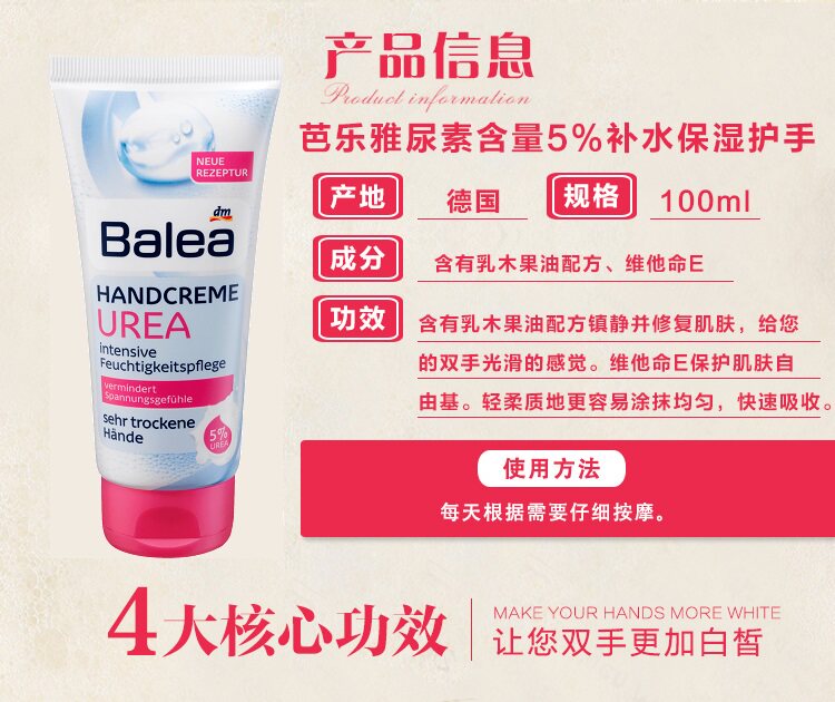 德国原装进口Balea芭乐雅尿素护手霜100ml 深层保湿滋润舒缓肌肤