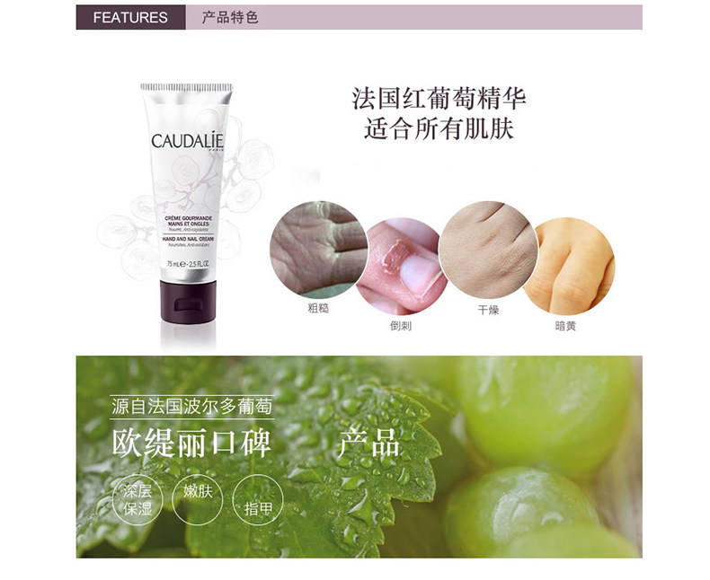 法国进口Caudalie欧缇丽葡萄籽护甲护手霜防干裂保湿滋润补水75ML