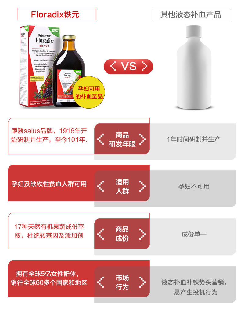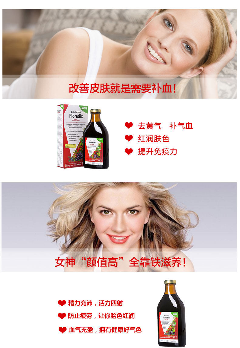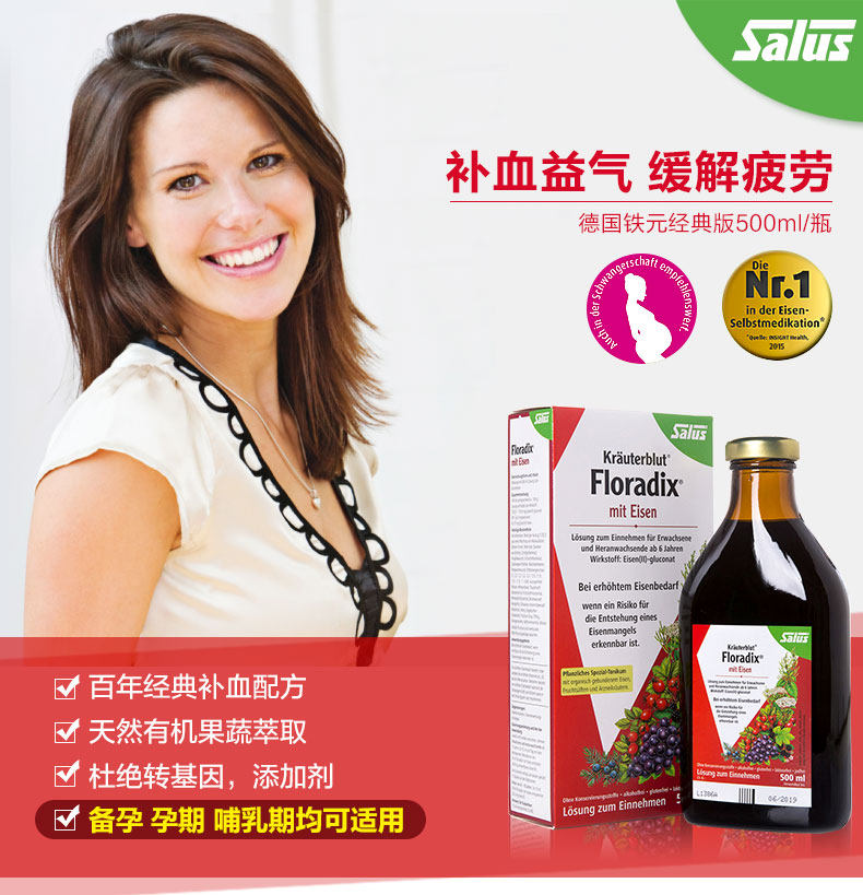 德国进口Salus Floradix铁元液女人孕期贫血补铁补气血老人500ml