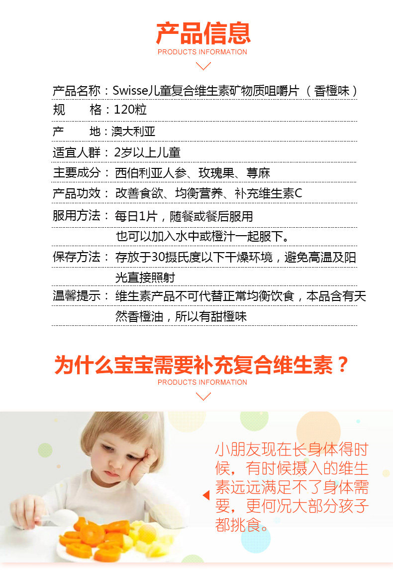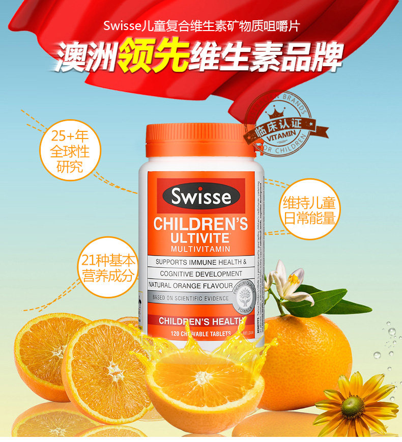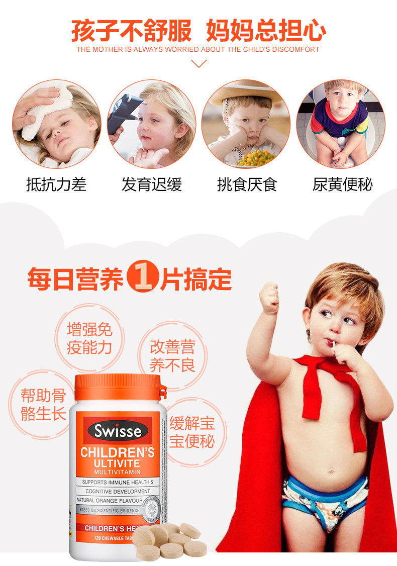 澳洲原装进口Swisse儿童复合维生素矿物质咀嚼片 多种维生素120片