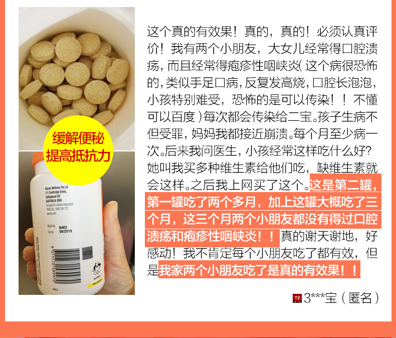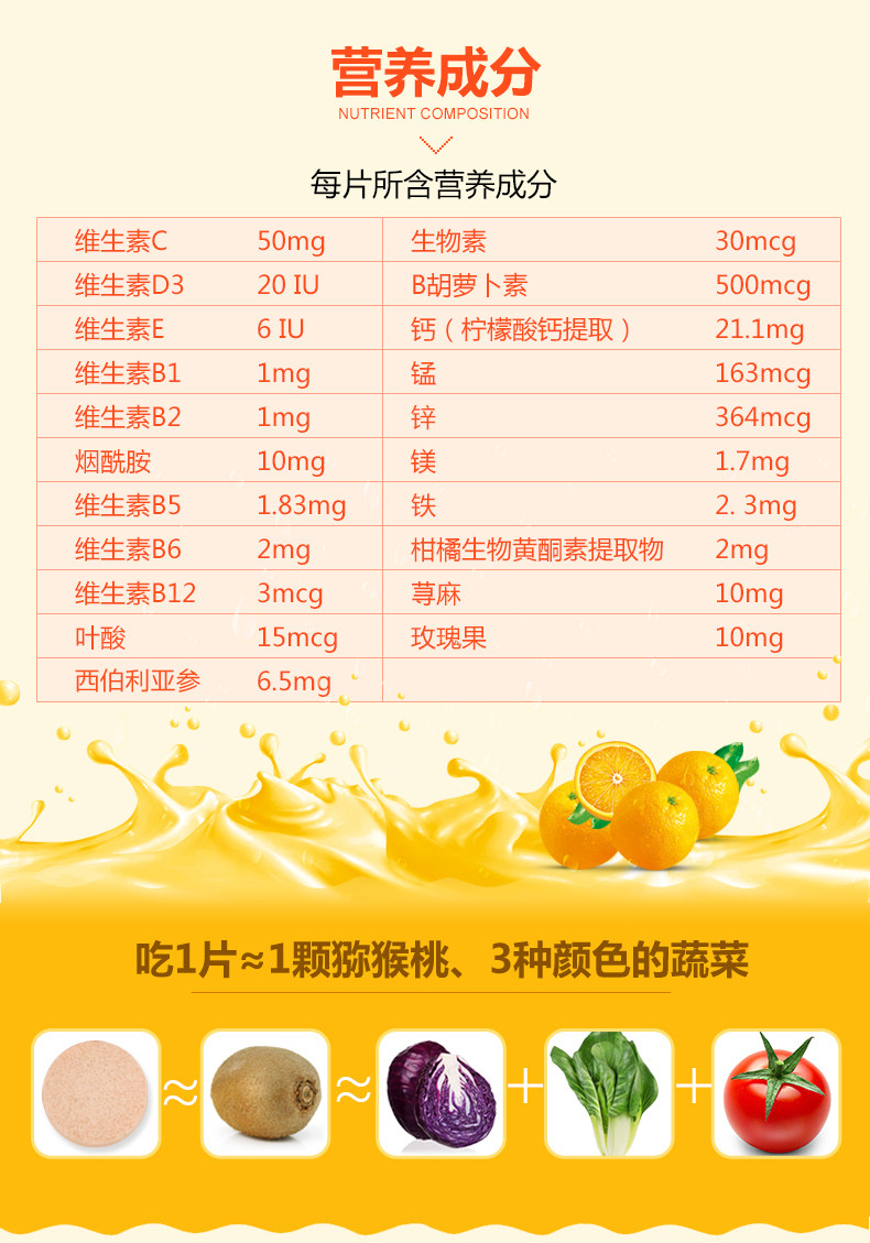 商品代码: 儿童复合维生素矿物质咀嚼片 多种维生素120片
