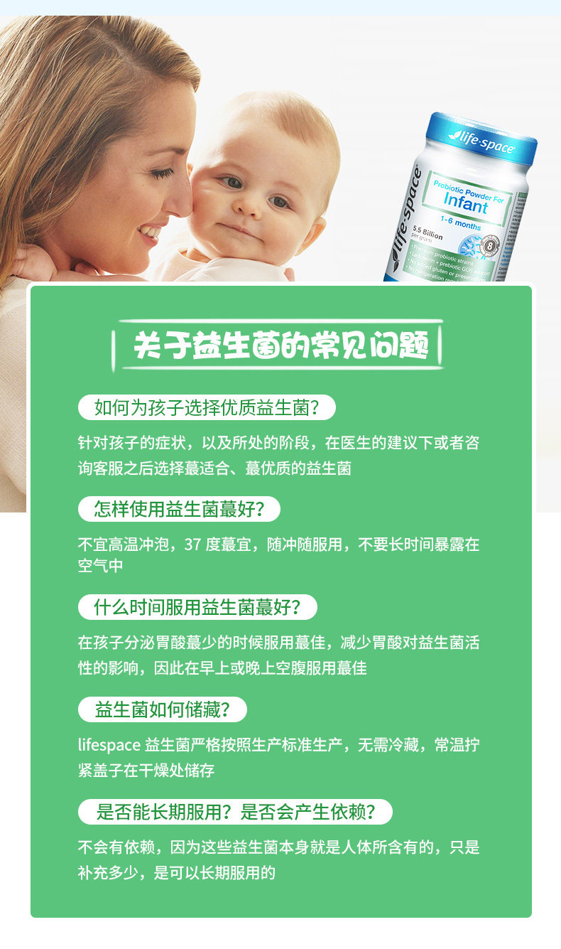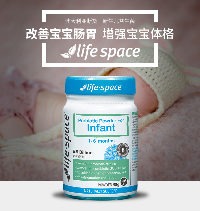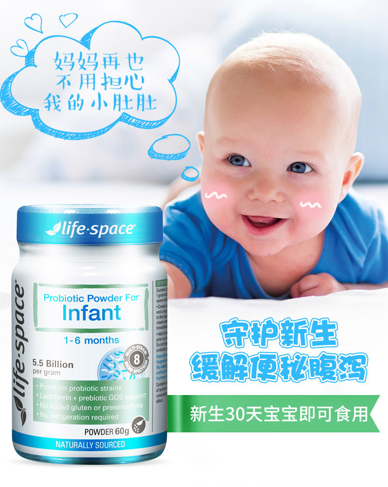 澳洲原装进口life space新生儿婴幼儿婴儿益生菌粉调理肠胃助消化(1-6个月)