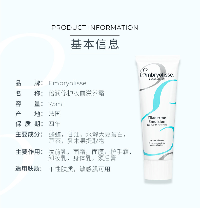 法国原装进口大宝embryolisse倍润修护妆前乳明星同款保湿打底隔离霜75ml