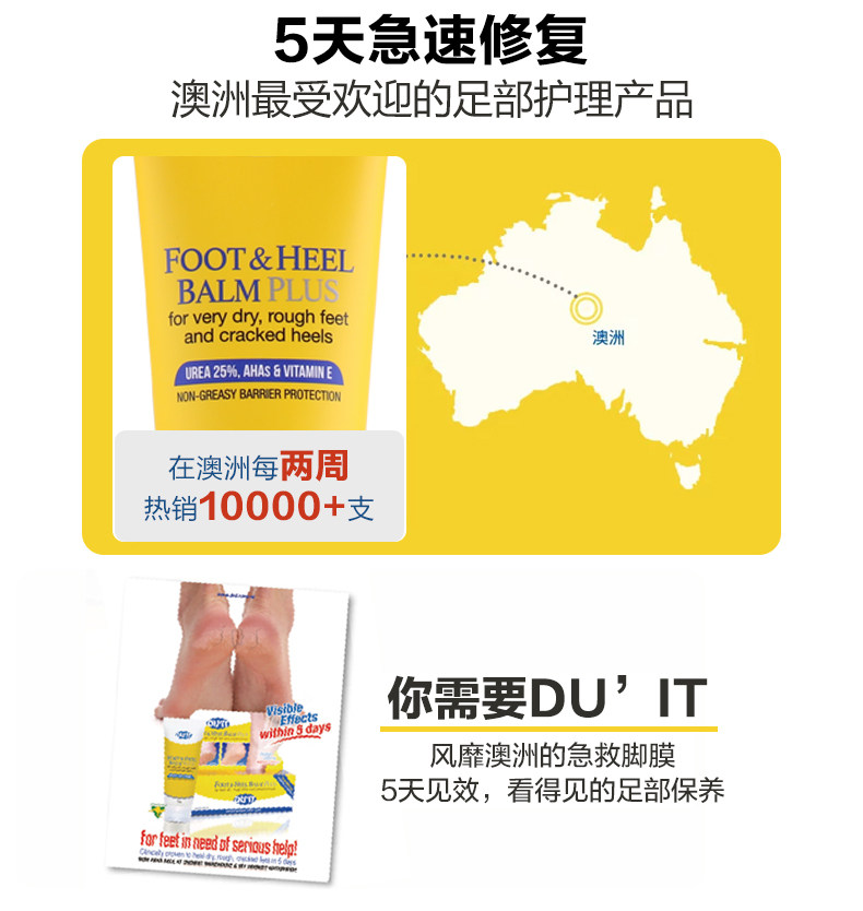 澳洲原装进口DU'IT duit护足霜50g脚膜duit足膜脚后跟干裂滋润保湿去死皮护脚膏 缓解足部皲裂