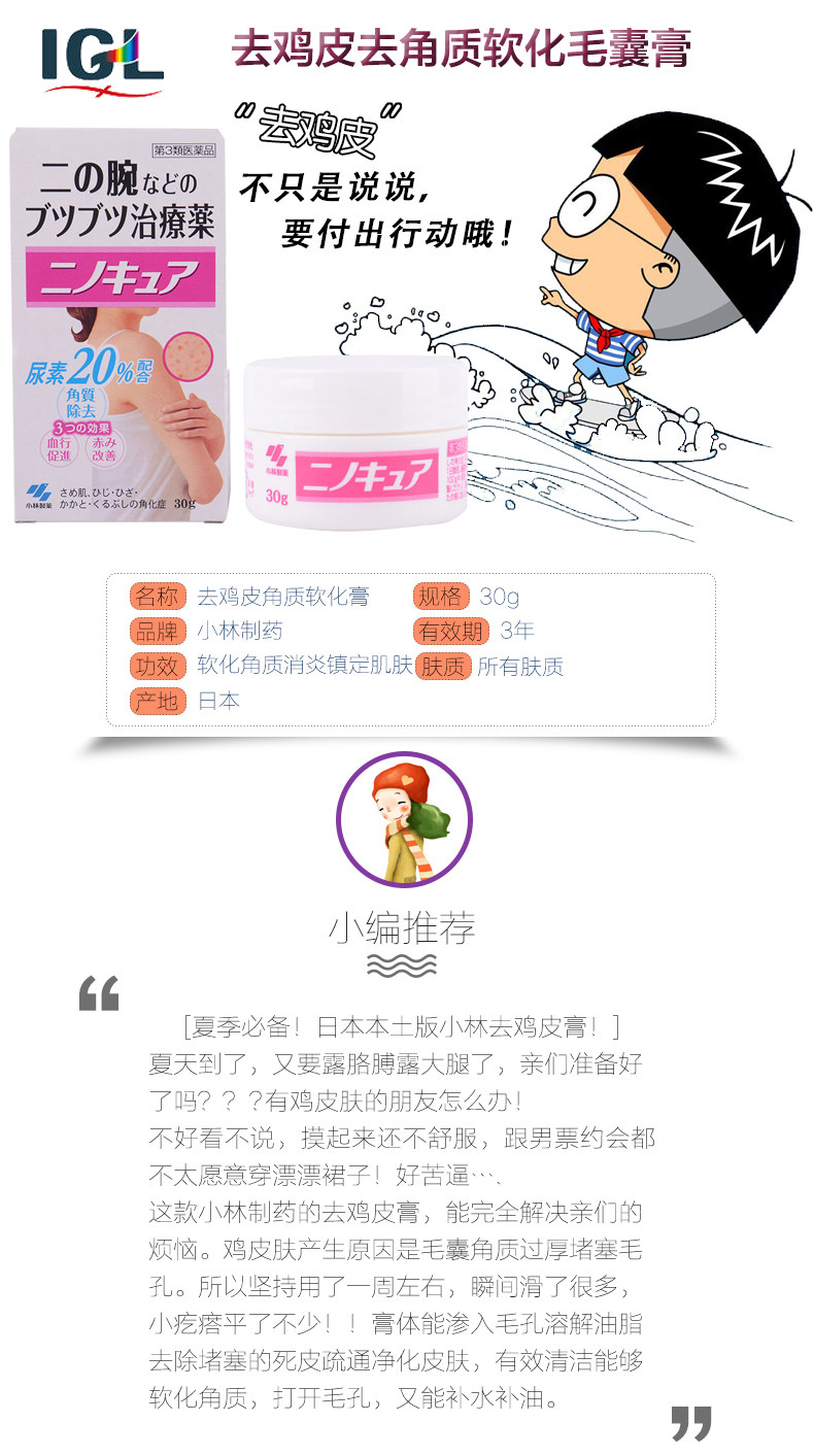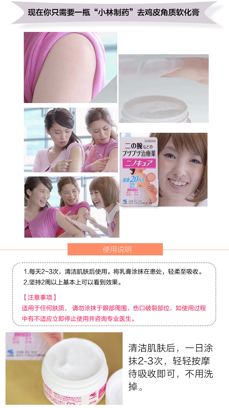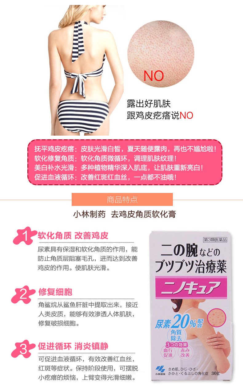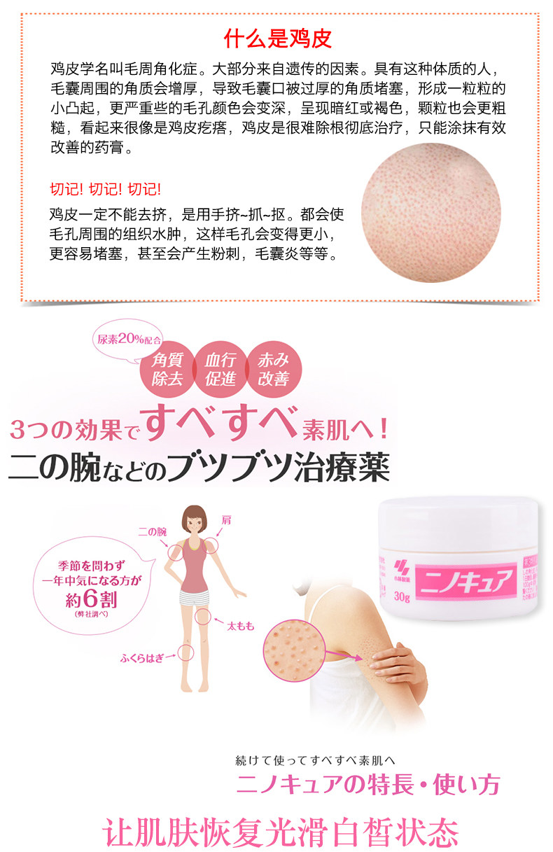 日本原装进口小林制药去鸡皮膏肤身体乳祛鸡皮疙瘩毛囊角质膏美白霜30g
