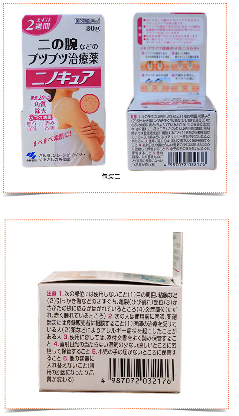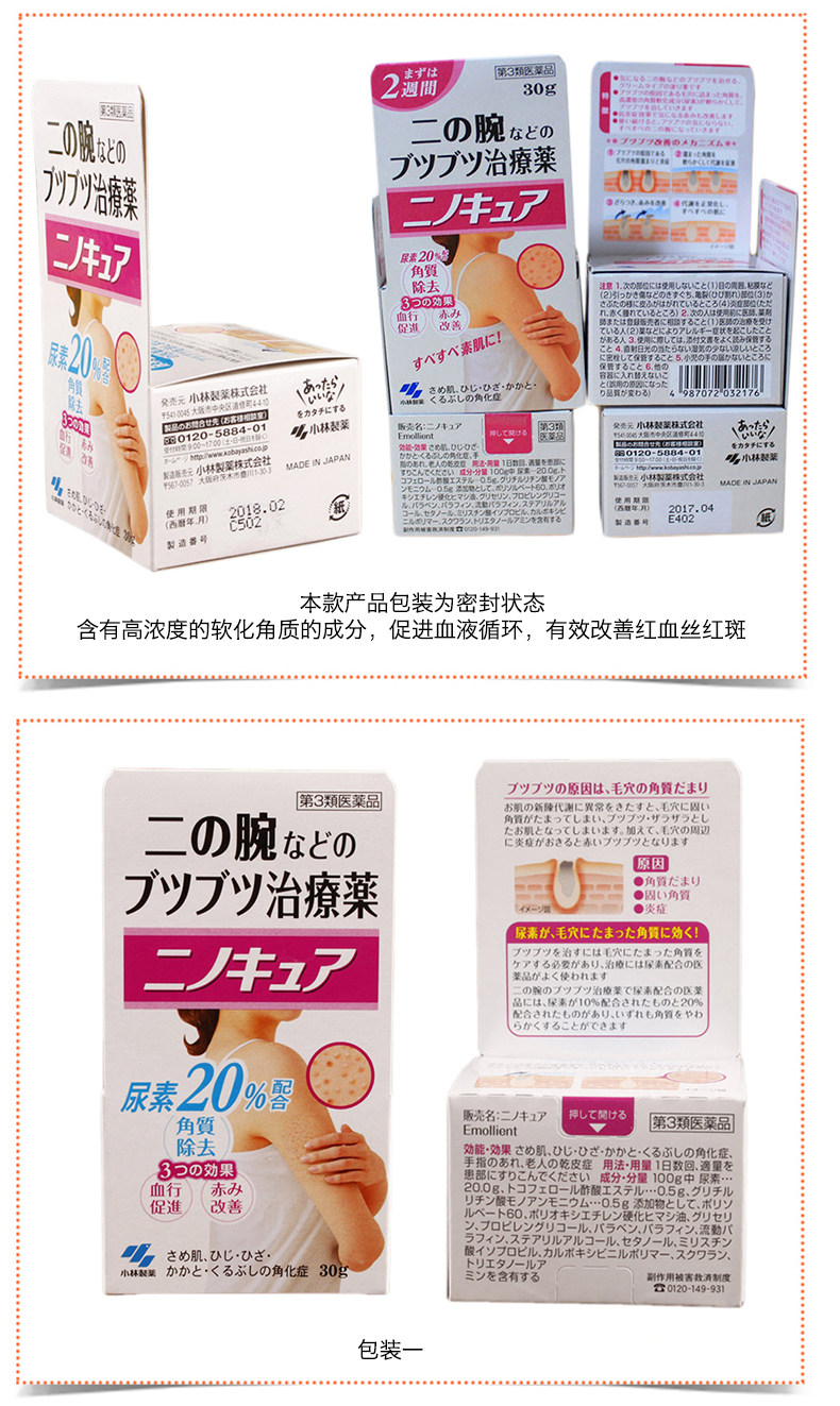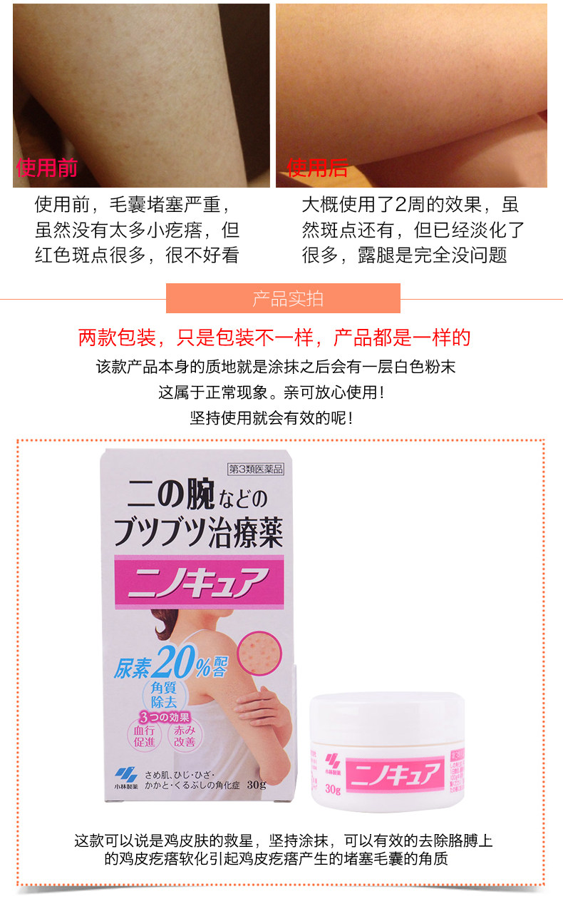 日本原装进口小林制药去鸡皮膏肤身体乳祛鸡皮疙瘩毛囊角质膏美白霜30g