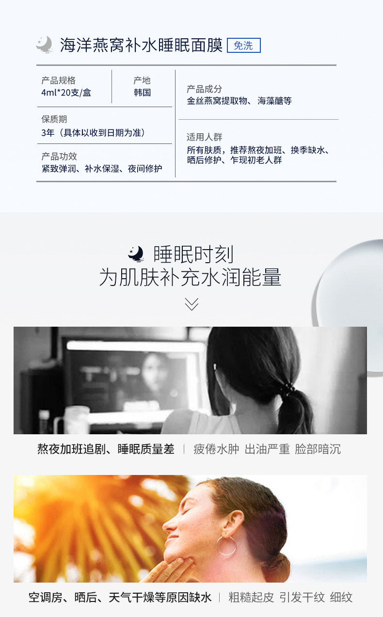商品代码: 燕窝睡眠面膜20支 补水保湿紧致提亮肤色收缩毛孔免洗男女 补水保湿 夜间修护 免洗睡眠面膜