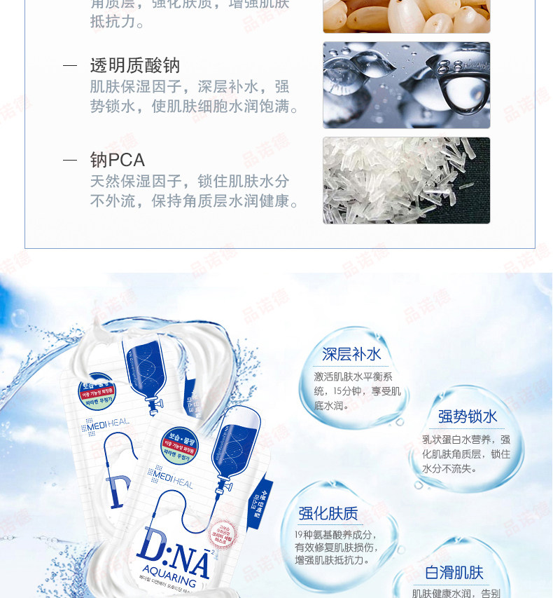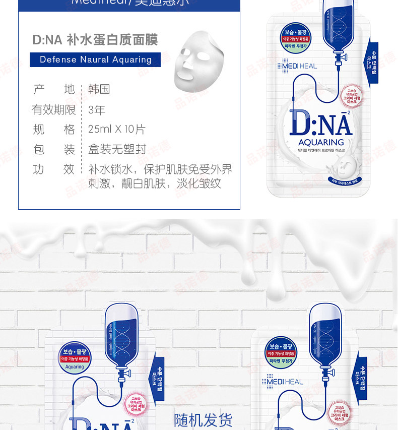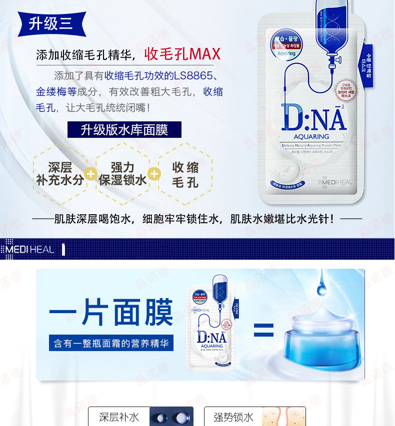 韩国原装进口DNA可莱丝水库补水保湿美白收缩毛孔女面膜10片装