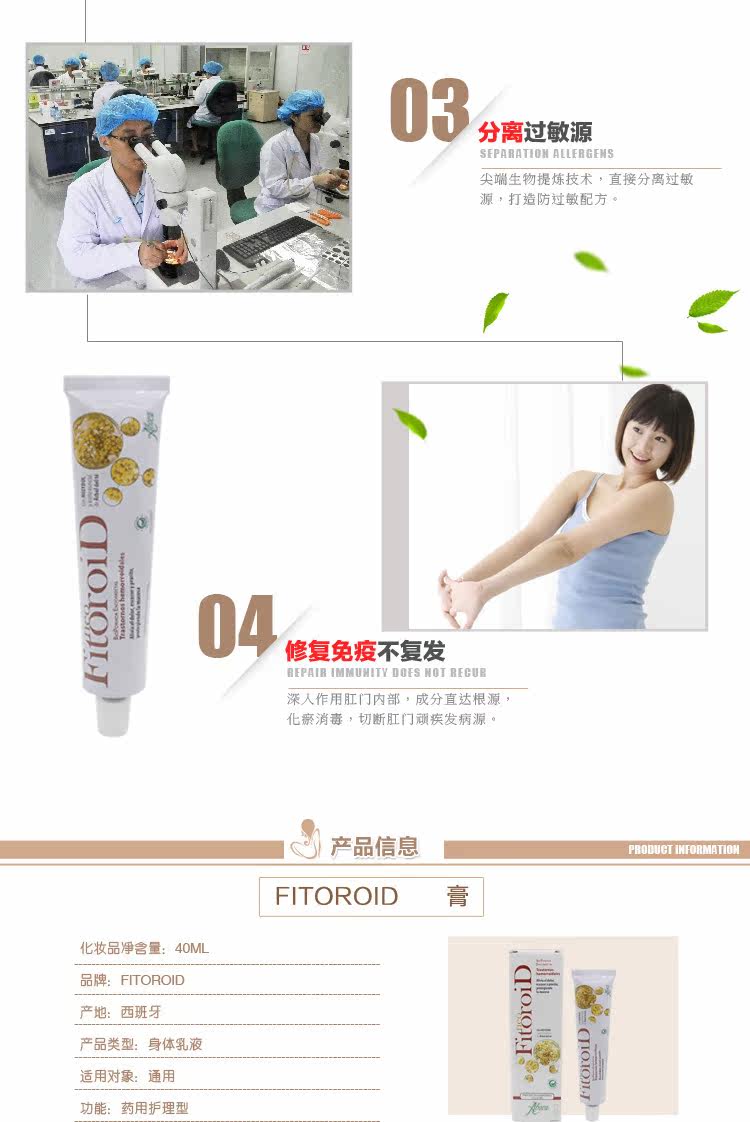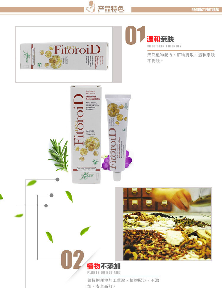 西班牙进口Aboca Fitoroid纯植物痔疮膏40ml 特效内外(孕妇可用)