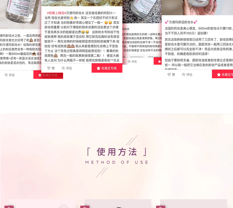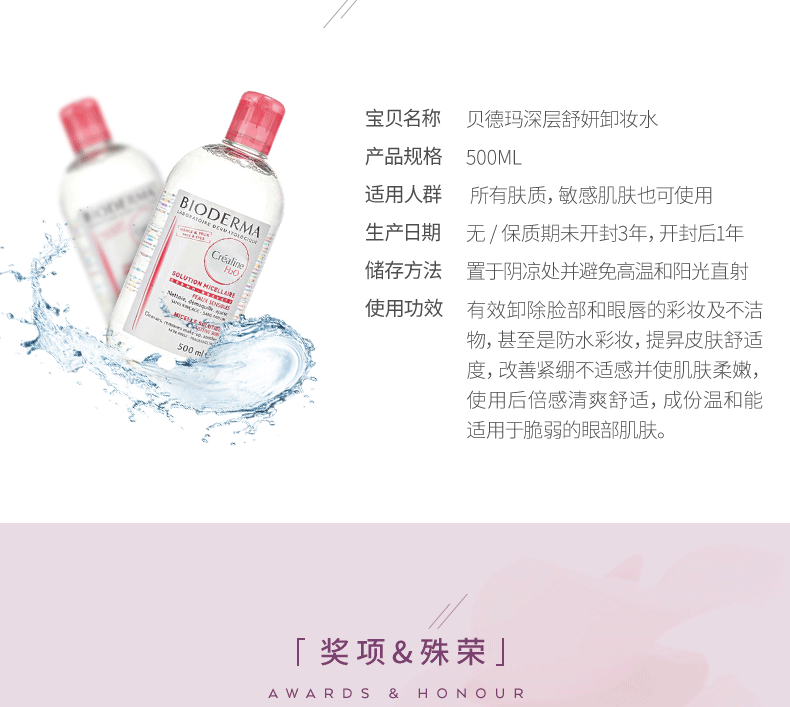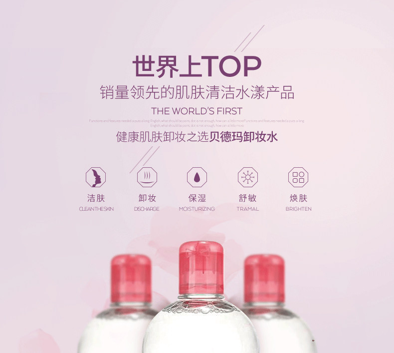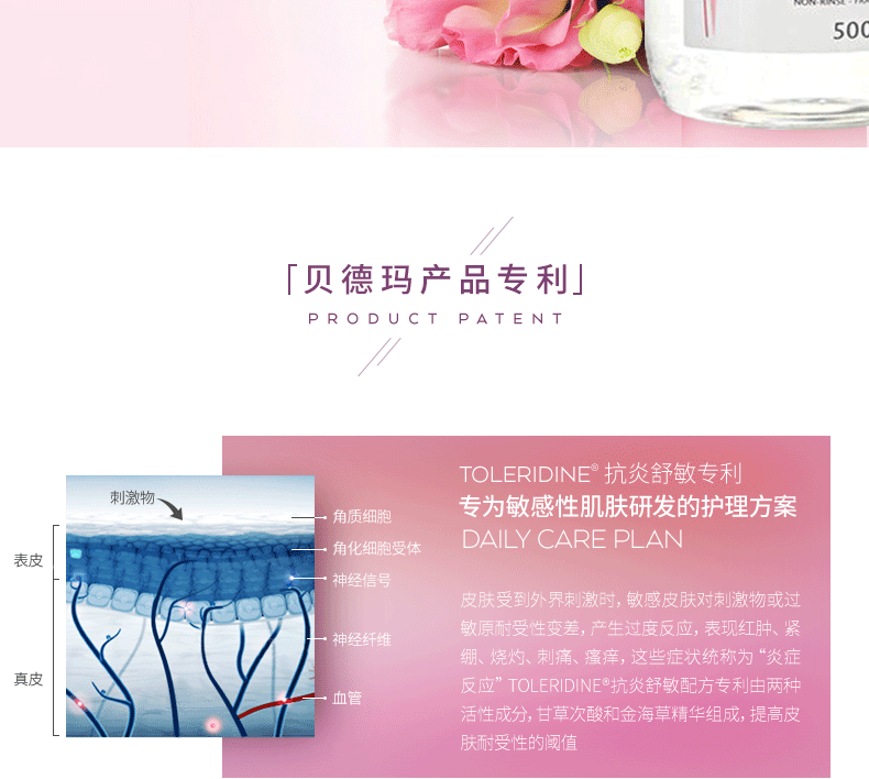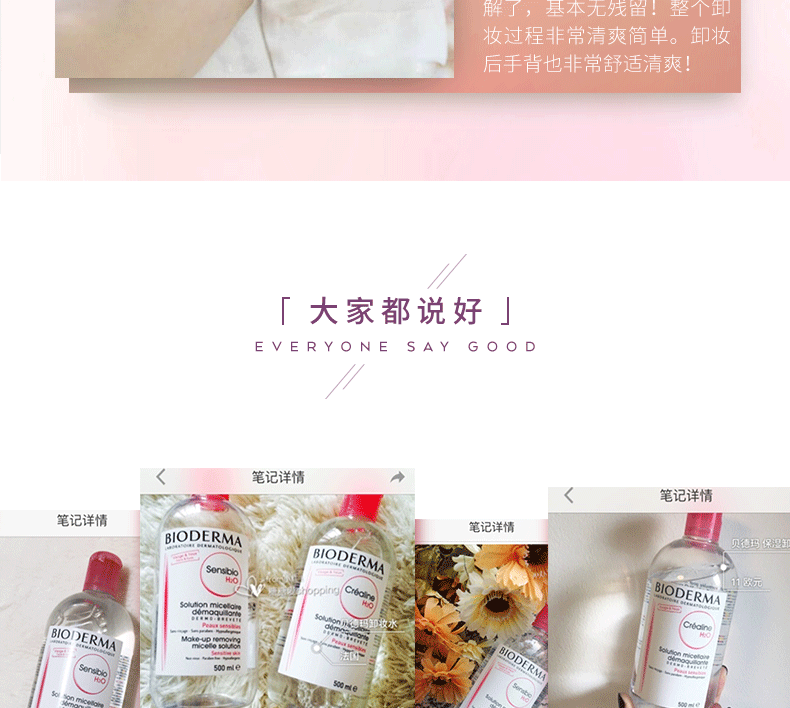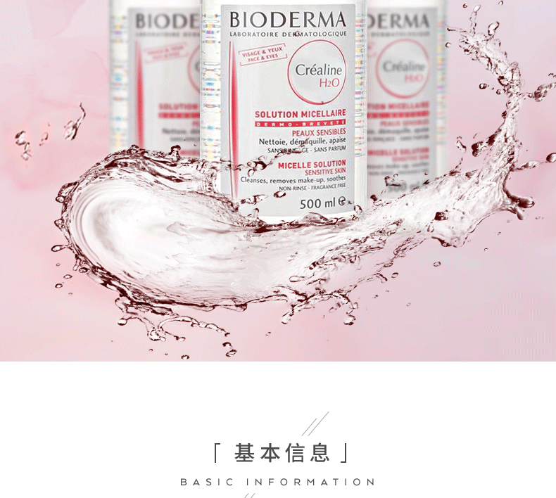 法国进口BIODERMA贝德玛卸妆水500ml 粉水 温和眼唇可用(适合敏感肌偏干性皮肤中性皮肤)