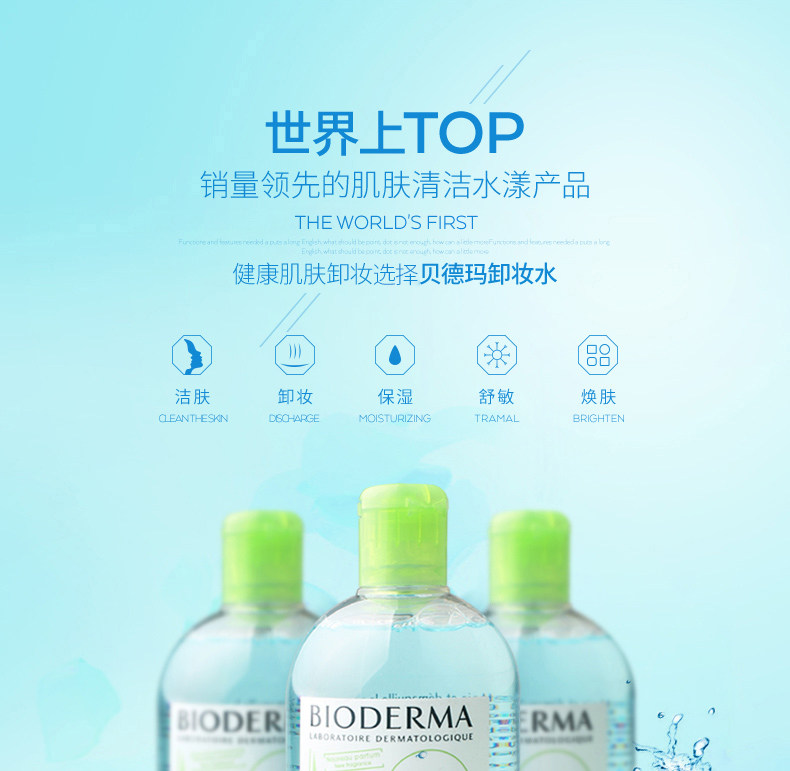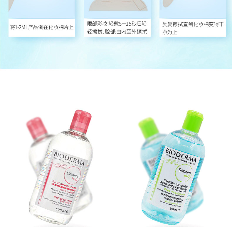 法国进口BIODERMA贝德玛贝德玛卸妆水500ml 蓝水 温和眼唇可用(适合油性、混合性皮肤)