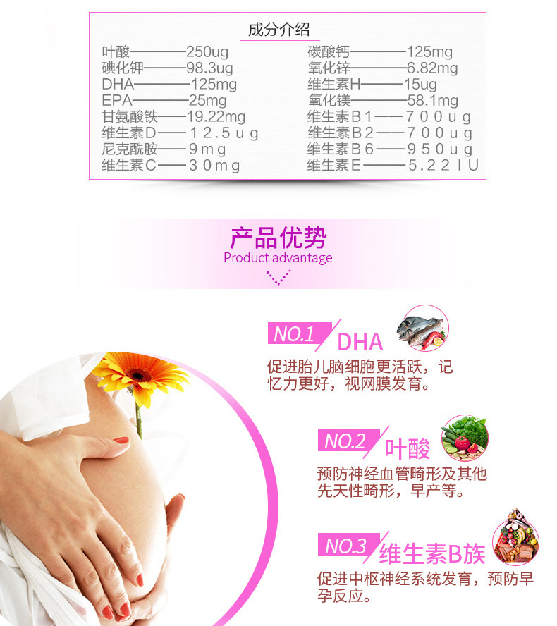 商品代码: 孕妇黄金营养素180粒 备孕孕期哺乳期含叶酸DHA