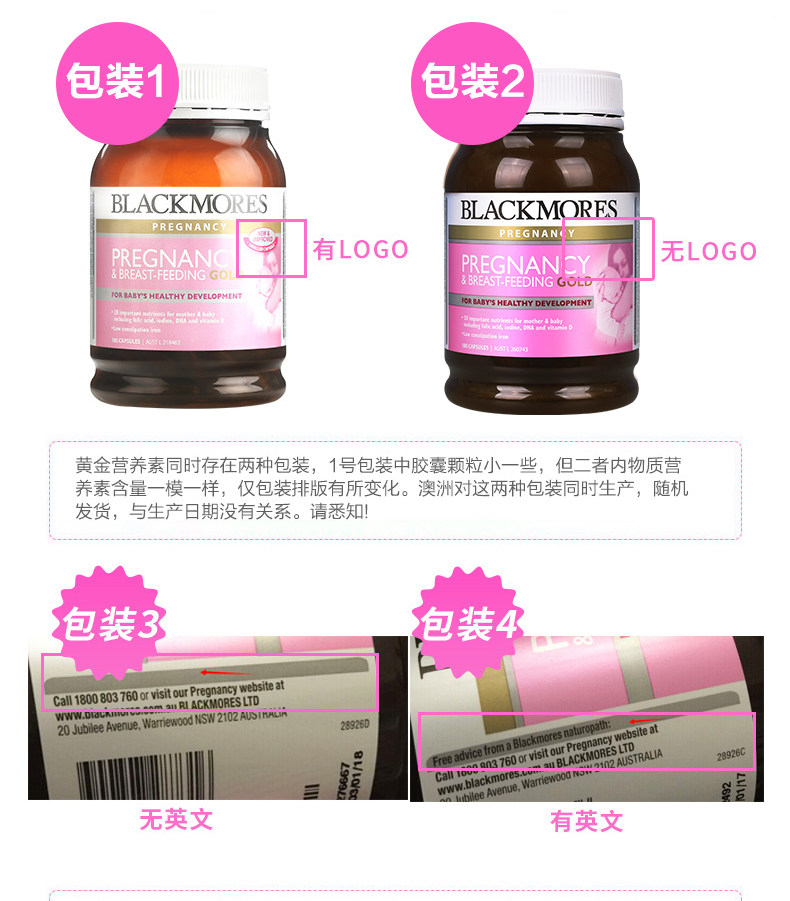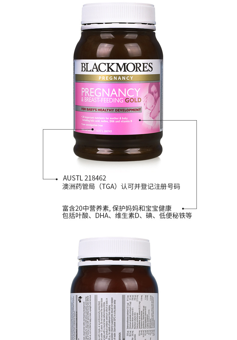 澳洲进口Blackmores澳佳宝孕妇黄金营养素180粒 备孕孕期哺乳期含叶酸DHA