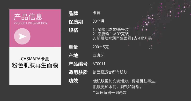 商品代码: Casmara/卡蔓粉色肌肤再生面膜