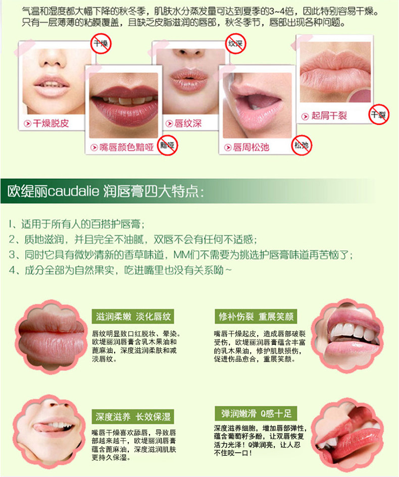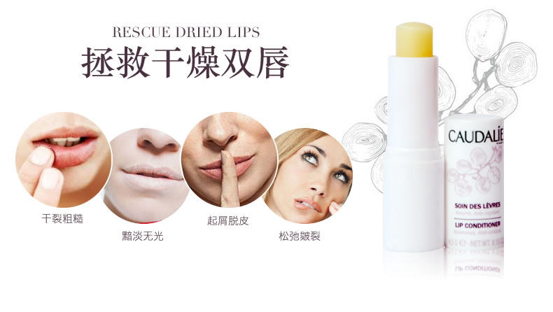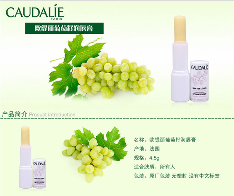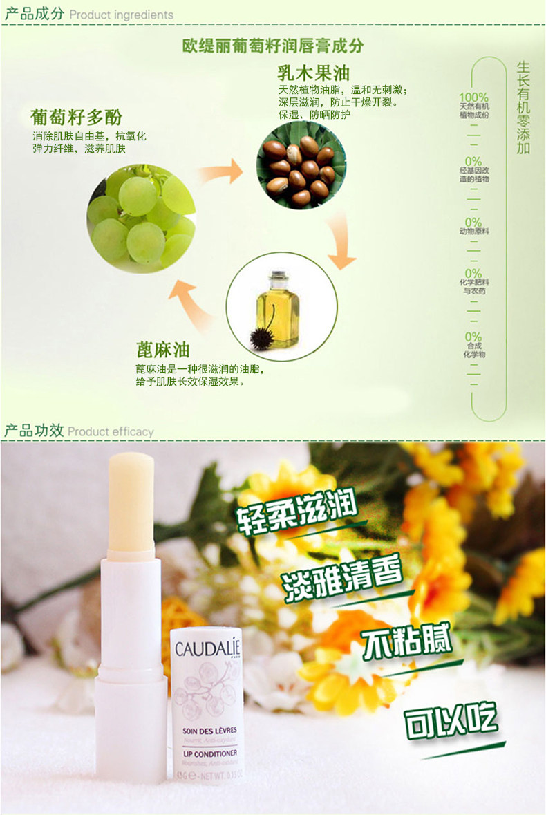 法国进口Caudalie欧缇丽葡萄籽多酚润唇膏清爽滋润不黏腻4.5g
