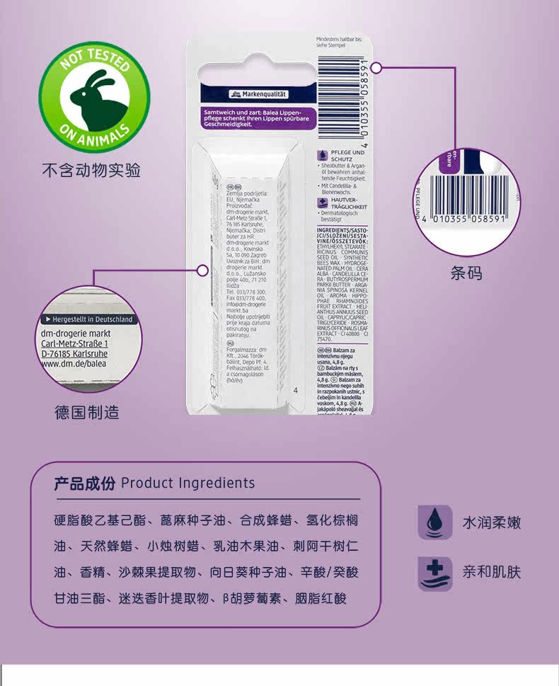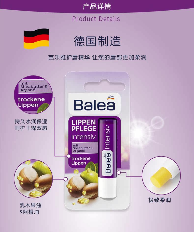 德国原装进口Balea芭乐雅无色自然修护唇纹滋养唇部去死皮护唇膏 修复干裂天然成分