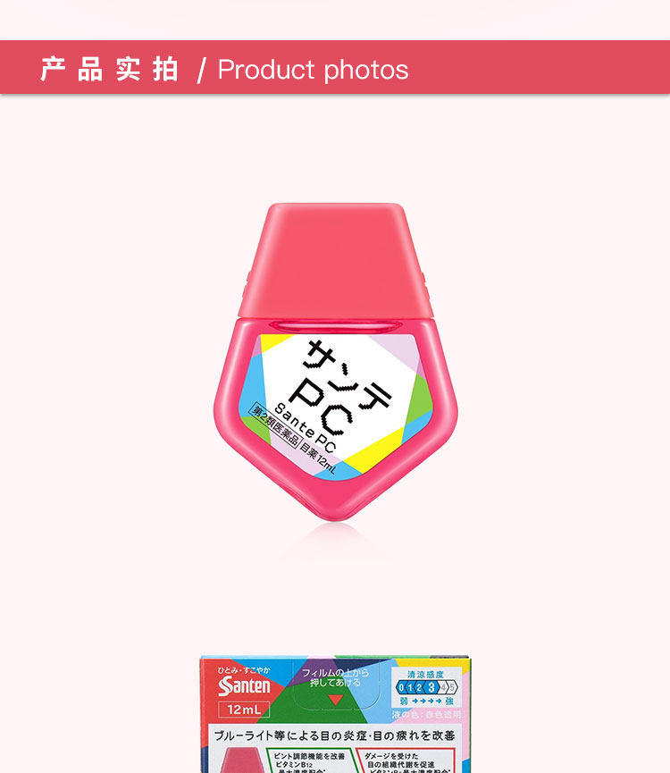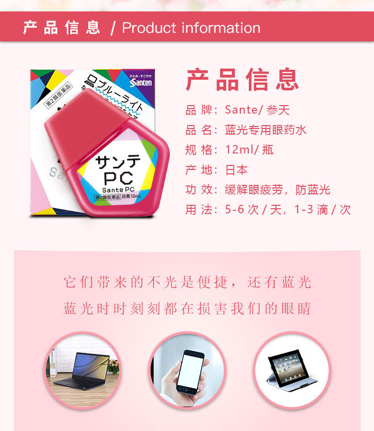 日本原装进口Sante 参天PC电脑手机蓝光专用眼药水12ml 电脑手机蓝光专用 修复眼部损伤