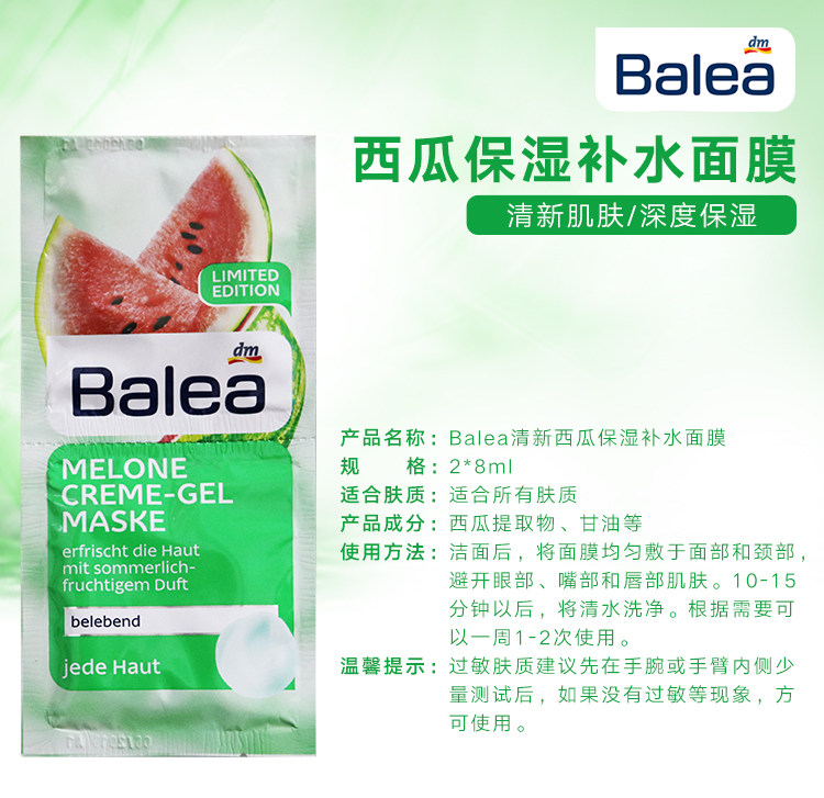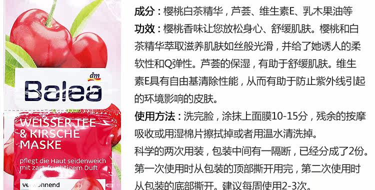 德国进口Balea芭乐雅面膜美白舒缓补水保湿滋润去角质清洁毛孔2*8ml(20片起1.50€/片 可混拍)
