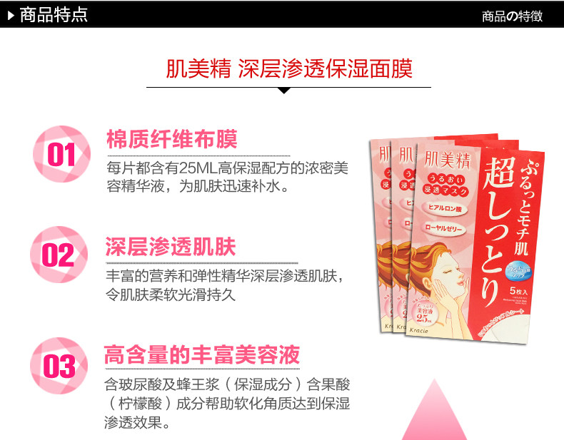 日本进口Kracie肌美精玻尿酸超保湿面膜5片美白深层浸透补水 超保湿 玻尿酸补水 深层浸透